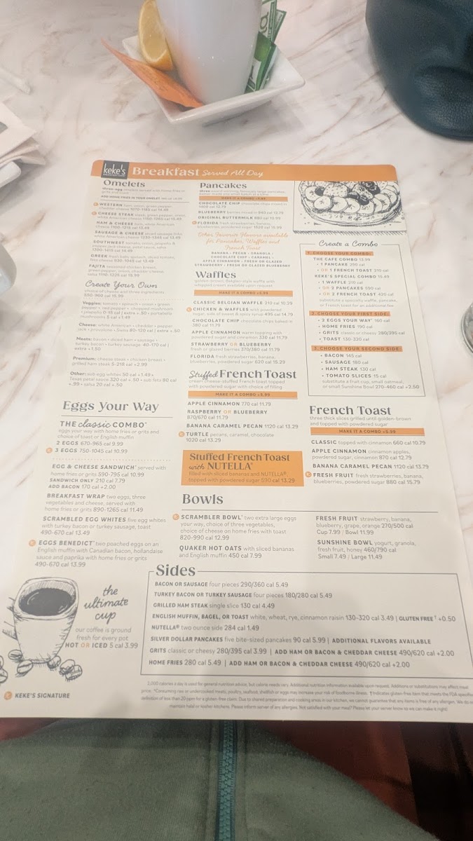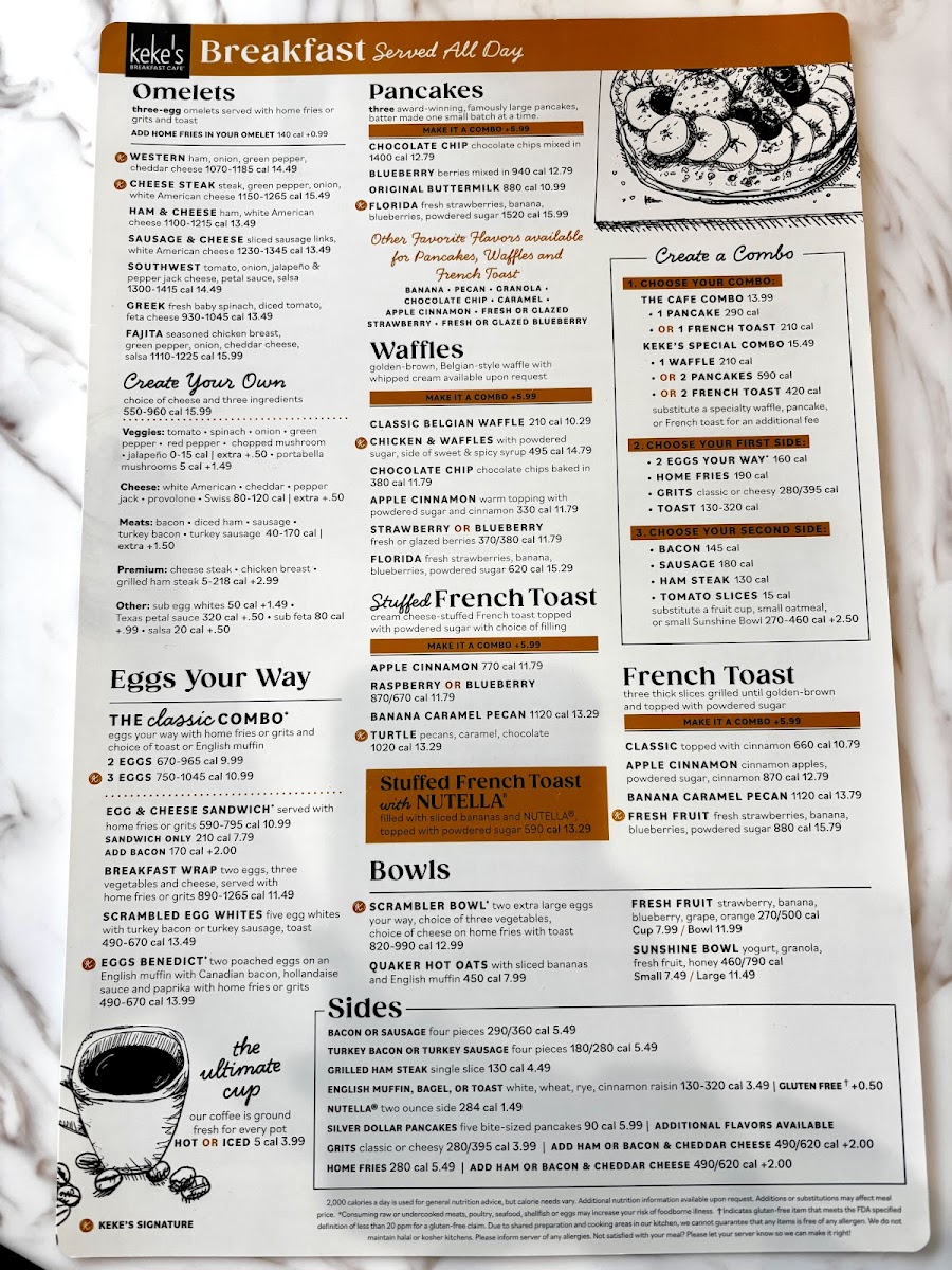 two eggs, three vegetables and cheese, served with home fries or grits, 890-1060 cal