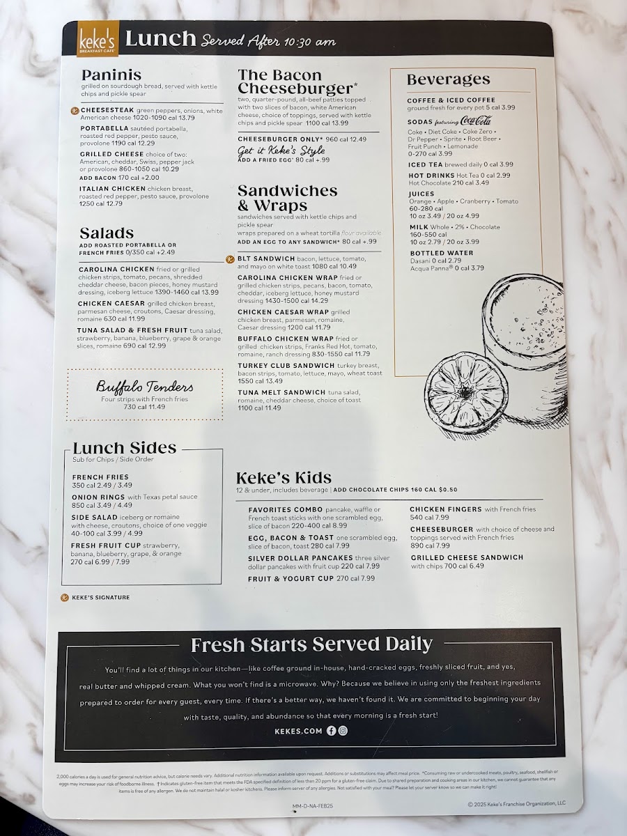 our classic waffle topped with crispy tenders and powdered sugar, served with house-made sweet & spicy sauce 495 cal