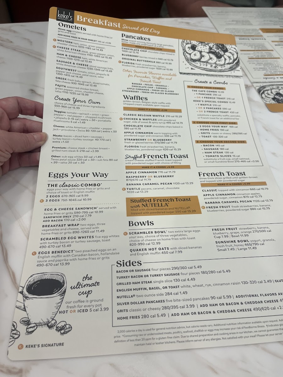 Delicious pecans cooked in the pancakes. 1450 cal.